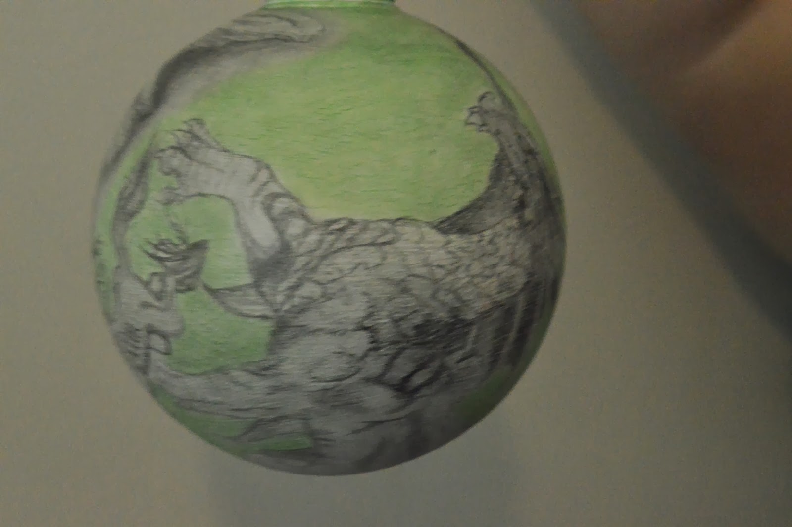 Using clear plastic ornaments I illustrated different mythological creature. I chose to do three different cultures of mythologies. The colors I used are associated with the colors of the flags from the countries of the cultures. The blue one illustrates creatures from Greek mythology. The creatures I chose from Greek mythology are the Pegasus, the Kraken and Cerberus. The green one illustrates the Irish mythological creatures; a dragon, a kelpie, and a banshee. The red one illustrates creatures from Egyptian mythology. Shown are the phoenix, gryphon, and the god Anubis.